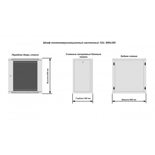 Шкаф телекоммуникационный разборный настенный 19'', серия Optimum, 12U, 600x350 мм, серый RAL7035, передняя дверь стеклянная в металлической раме QTECH WQO2-61235-G